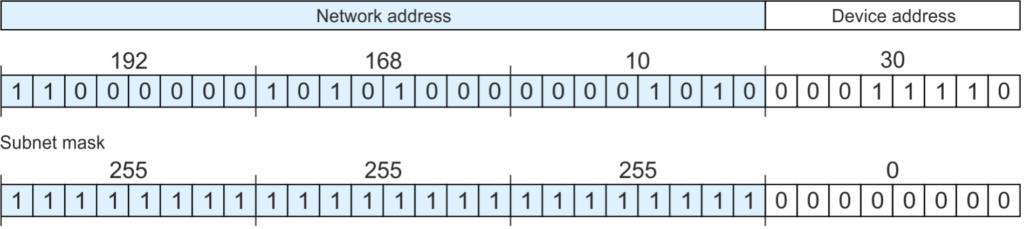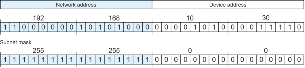 Võrgu liidese seadistamisel määratakse piir võrgu ja seadme osade vahel alamvõrgu maski abil, mis koosneb samuti neljast baitist. Alamvõrgu maski toimimise mõistmiseks tuleb IP-aadress ja alamvõrgu mask esitada kahendvormingus: iga IP-aadressi võrgu osale vastav bit on alamvõrgu maskis seatud väärtusele 1. Seadme osale vastavad bitid on seatud väärtusele 0.