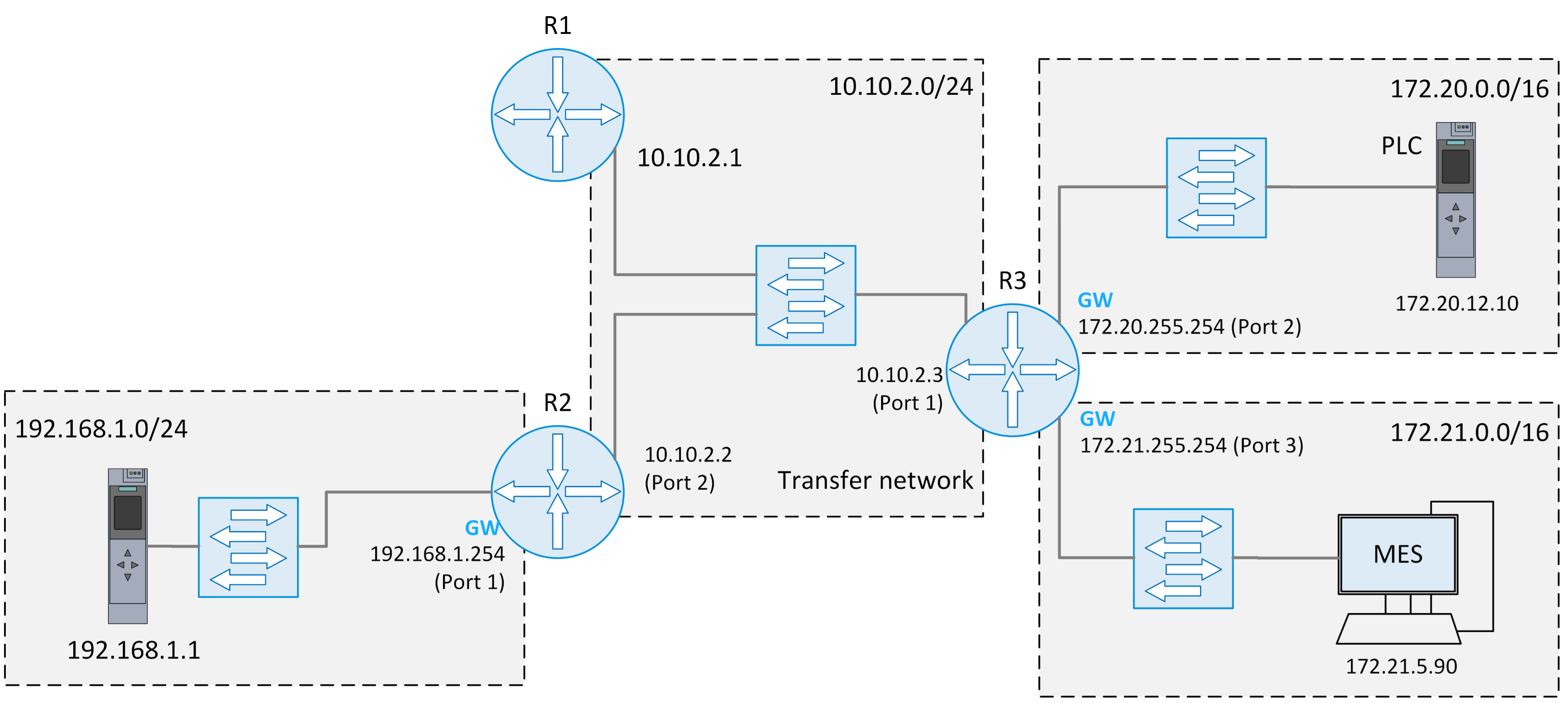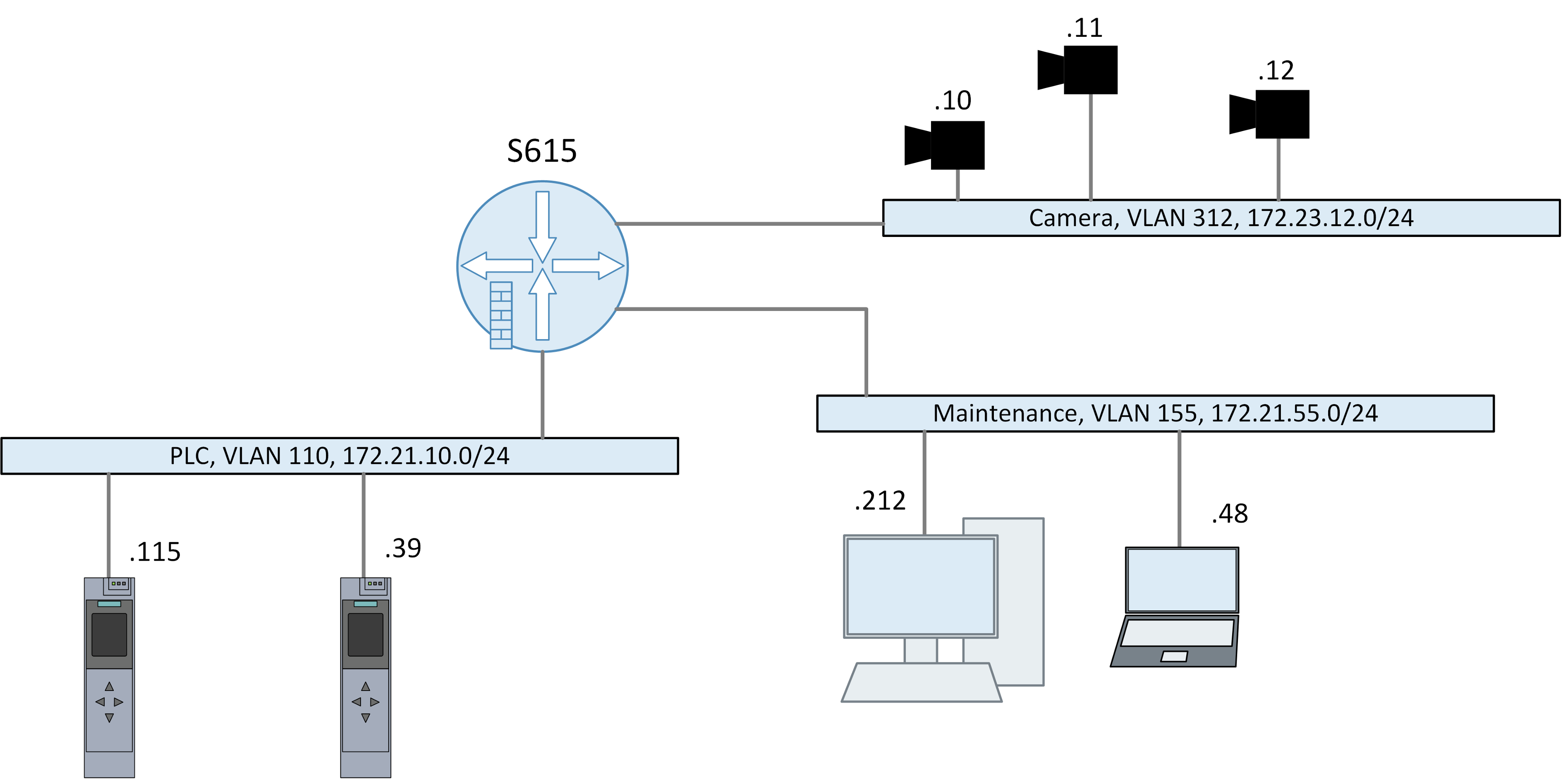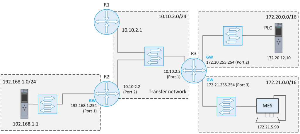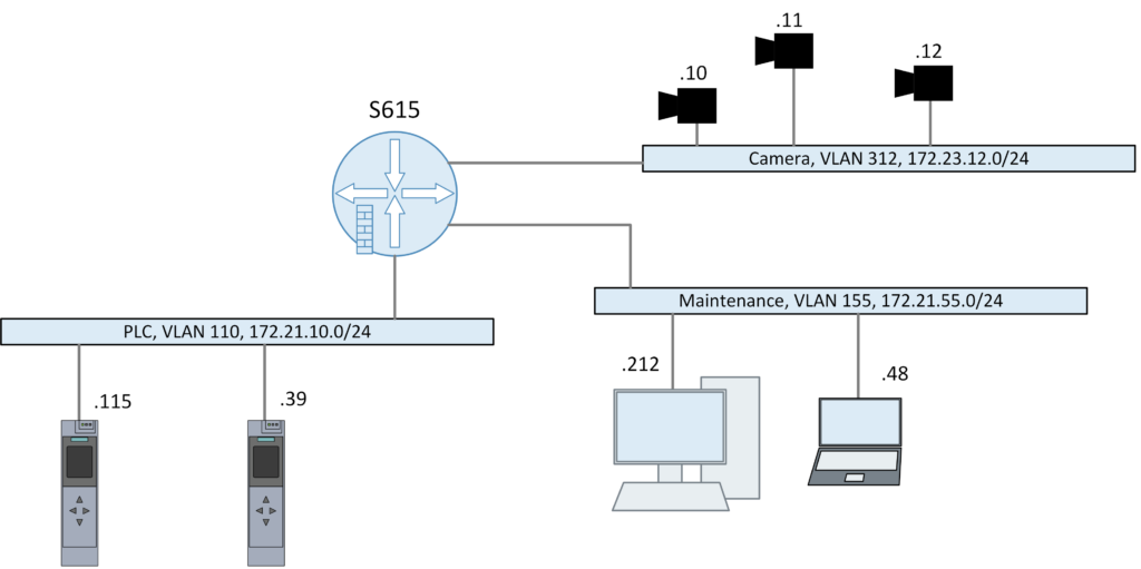 Et vältida liiga suuri levialasid ja ebasoovitavaid juurdepääse võrgus, on soovitatav jagada võrgud väiksemateks aladeks. Näiteks tootmisüksus, millel on kolm alamosa, mis on algselt ühendatud üheks ühtseks võrguks:.