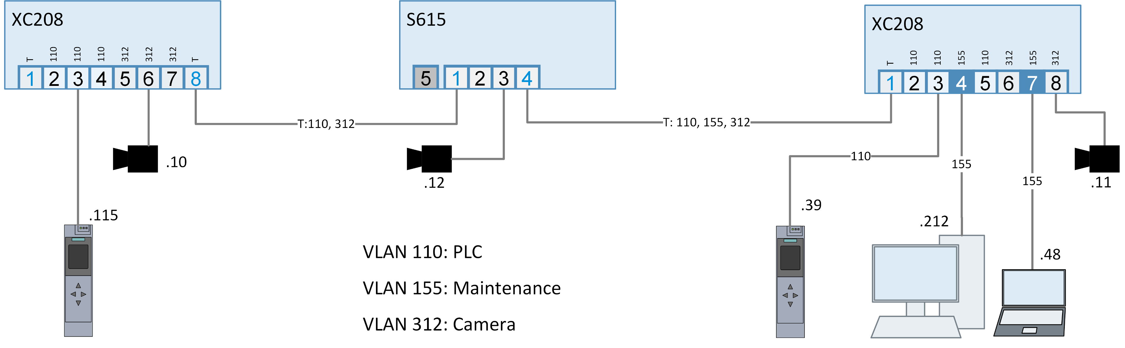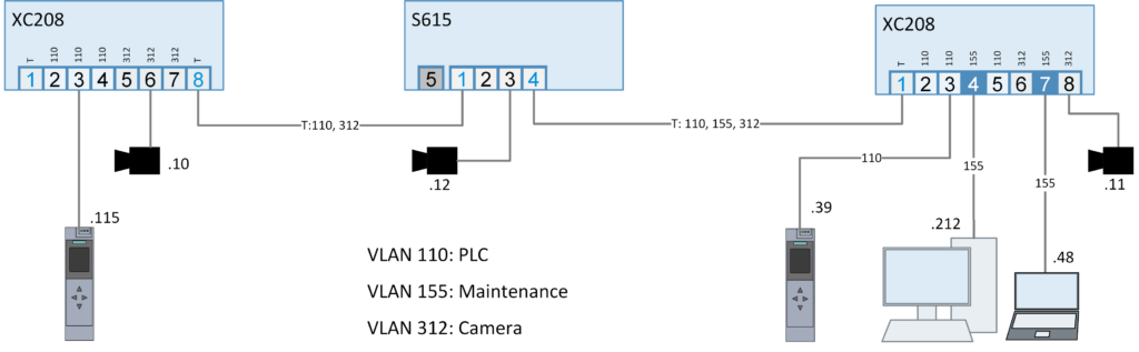Kõik http-sõnumid (nii krüptitud kui krüptimata) määratakse VLAN-ile ID-ga 100 ja RTP protokolliga videokandmed määratakse VLAN-ile 260. Kõik muud sõnumid määratakse Port VID-ile 12.