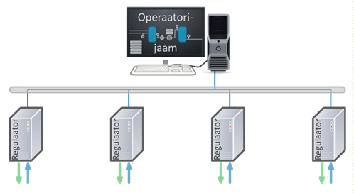 Seda konkreetset hajusjuhtimissüsteemi tüüpi iseloomustab kõrge detsentraliseerimistase (Joonis 1.3) ja spetsiaalsete funktsioonidega seadmete kasutamine. Hajusjuhtimissüsteem koosneb lihtsatest kontrolleritest, mis baseeruvad ühekiibilistel mikroarvutitel, ja tööjaamaks konstrueeritud arvutist.