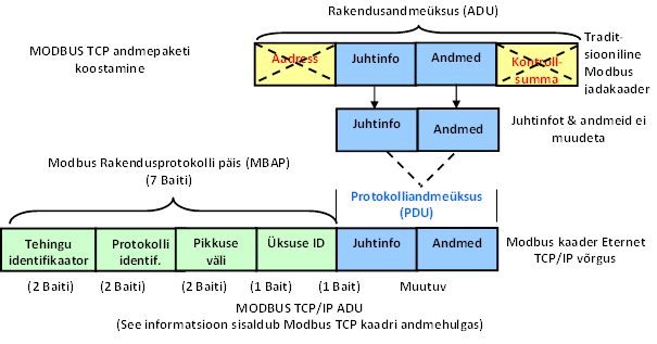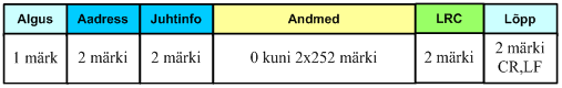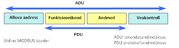 Andmeedastuse suundAlluvseadme aadressFunktsiooni numberAndmed (või veakood)CRC