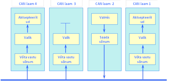 Mööda CANi siini saadetakse samaaegselt edastatavad andmed kõigile võrguseadmetele laiali (pilt 6.2).