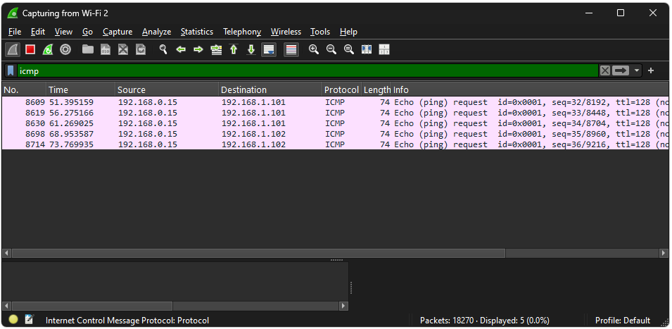- ICMP filtreerimine: ICMP protokolli filtreerimine on kasulik võrgudiagnostikas, näiteks ping-käskude ja vastuste jälgimisel.